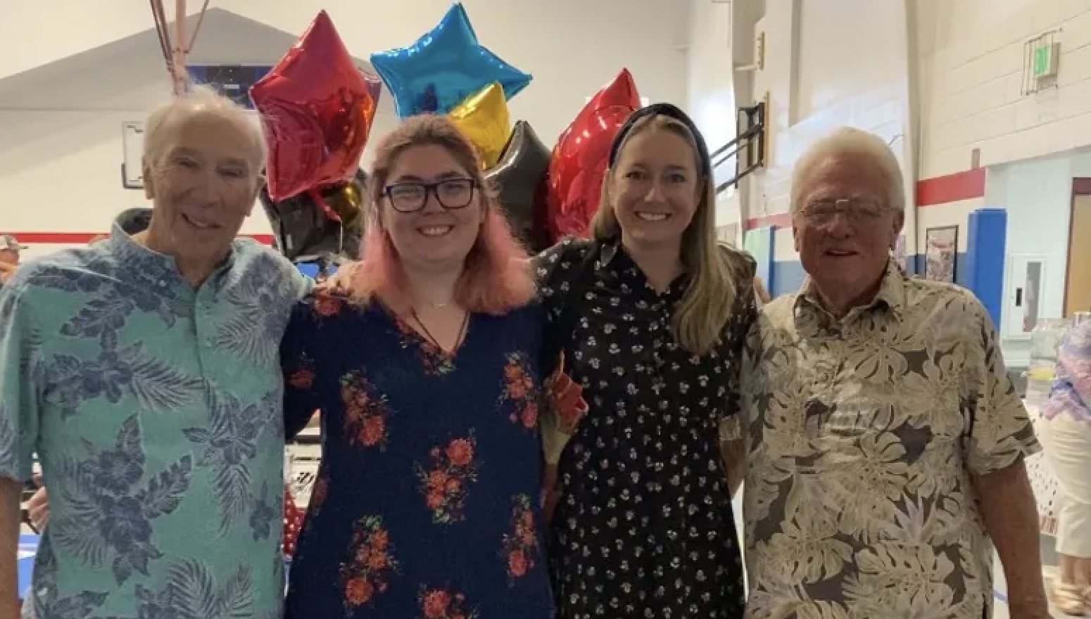 John with Gehring Scholar Sammi Reed, True North co-founder and Executive Director Vivian Russell, and John's longterm friend, Charlie Bausch. John was awarding one of the scholarships that he helped launch. He always wore Hawaiian shirts to graduations and tell stories of growing up on a military base in Hawaii and going to school barefoot.